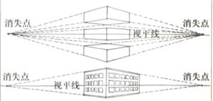 石雕制作與成角透視,平放的方形物體的一個棱角對著我們時,出現(xiàn)了圖中所示的成角透視現(xiàn)象。成角透視規(guī)律:有兩個消失點,分別交集在視平線上的左右兩邊;畫面上的垂直線永遠(yuǎn)垂直,只有近長遠(yuǎn)短的變化。