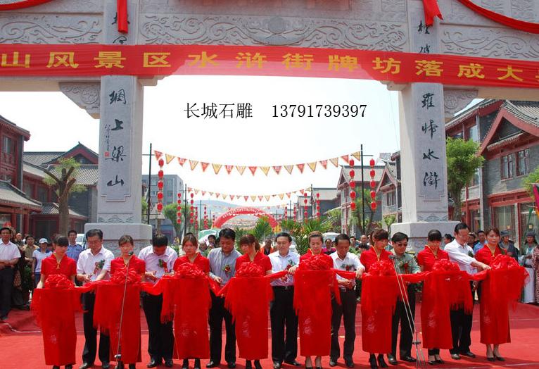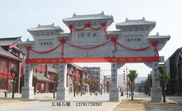 百說不如一見,請看照片:梁山水滸街石雕牌樓的圓滿落成,鑄就了梁山縣一處標(biāo)志性建筑景觀,豐富了文化旅游內(nèi)涵,提升了梁山縣旅游和城市品牌形象。它是傳統(tǒng)文化和現(xiàn)代文明的有機(jī)融合,是文化旅游景觀和民眾心聲的集中表現(xiàn),必將為我縣帶來福音和好運(yùn)!