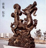 古代中國(guó),頭有角的為公龍;雙角的稱為龍,單角的稱蛟;無(wú)角的為璃,古時(shí)玉佩常有大小雙龍,仍稱母子璃。因龍是神物,至高無(wú)上,是皇帝的象征,也是東方的代表,五行中是屬木的,也常用青石雕刻,故此有左石雕青龍、右石雕白虎的說(shuō)法