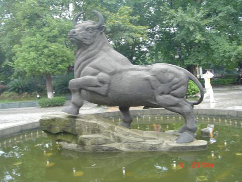 我國自古深受水患之害,人們在河水邊、橋頭、堤壩上,多放置銅鑄、鐵鑄、石雕的牛、犀牛等,作為鎮(zhèn)水之用。因?yàn)榘凑瘴逍邢嗫说恼f法,牛屬土,土可抵御水。現(xiàn)存最早的成都市石雕牛是秦代李冰留下的。