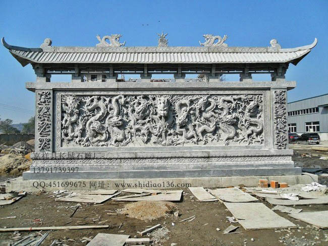 影壁雕刻構(gòu)造比較簡單,無論是哪種類型的影壁,其都由三部分構(gòu)成,主要為下堿、墻身以及屋面。