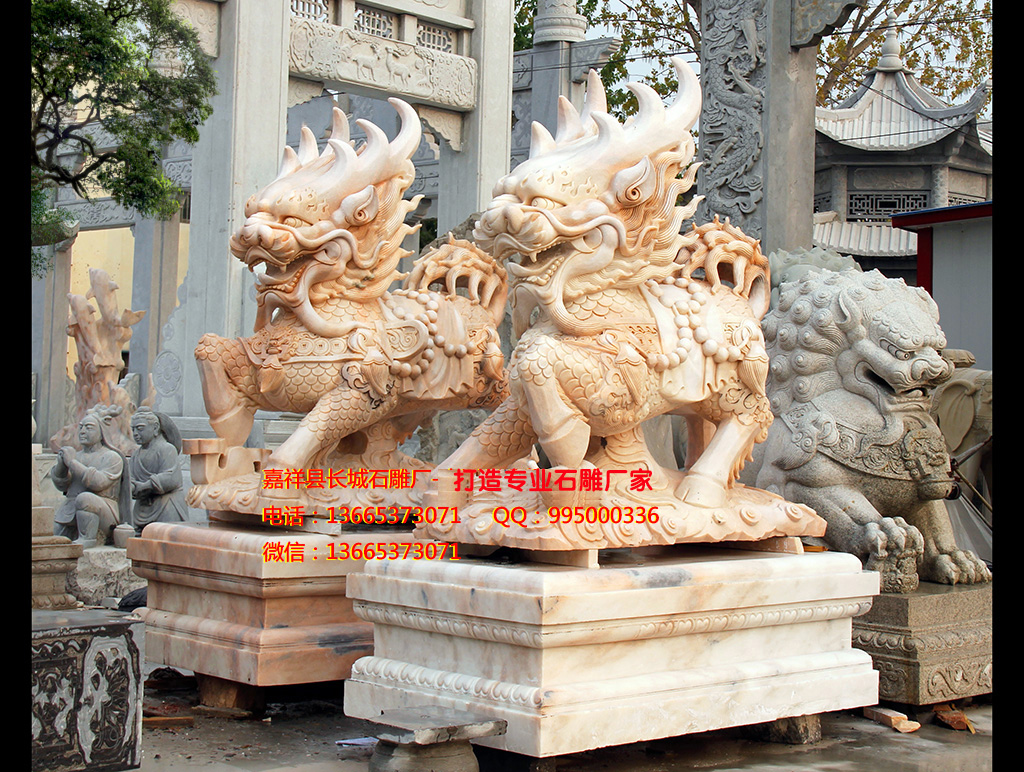 如果把石雕麒麟擺放在不同的位置也會起到不同的效果??梢园痒梓霐[放在臥室,這樣做的一般都是年輕夫婦的做法,因為麒麟有求子的作用,也寓意吉祥。也有不少家庭將麒麟擺放在書房,其實這樣也是可以。一般情況下,麒麟都分一雌一雄,書房擺放這樣一對麒麟,要將頭部對著辦公室的門口,可以為自己帶來好運,財源滾滾。要是把石雕麒麟擺放在家門口,可以將煞氣阻擋在房子的外面,起到****的重要作用。按照傳統(tǒng)意義上房屋的建筑格局,同時,將麒麟安置在白虎位,正好可以沖散白虎的煞氣,保佑屋內(nèi)的人的平安。也可以把麒麟擺放在與客廳相對的位置,這表現(xiàn)出對麒麟的尊敬。總之還是要根據(jù)現(xiàn)實生活中的實際情況,假如在白虎方位的外面有比較尖銳的物品,要選擇已經(jīng)開光的麒麟。