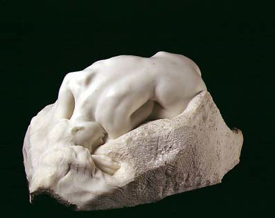 雕塑提供了一個(gè)可供觀眾想象和創(chuàng)造的三維空間,它以靜態(tài)的造型表現(xiàn)出運(yùn)動(dòng)的姿態(tài)。從這個(gè)角度看,雕塑永遠(yuǎn)表現(xiàn)動(dòng)態(tài),甚至完全靜止的雕塑也可被看做具有一種內(nèi)在運(yùn)動(dòng),一種在空間、時(shí)間上持續(xù)和伸展的狀態(tài)。人們可以從這一瞬間的造型中想象靜態(tài)向動(dòng)態(tài)的轉(zhuǎn)變,想象行為的連貫,以及持續(xù)的活動(dòng)過(guò)程,從而體味出活力和精神,體味出冷冰冰的物質(zhì)材料后面的體溫和感情。例如古希臘雕塑家米隆的<擲鐵餅者》,取材于運(yùn)動(dòng)員在擲出鐵餅前一瞬間的關(guān)鍵性投擲動(dòng)作。他向前彎曲傾斜軀體,手臂上的肌肉凸起,眼光灼灼有神,右腿微屈,腳趾緊縮,繃緊每一塊肌肉;左腿后伸,腳尖著地,使身體重心全放在右腿上,集中表現(xiàn)了運(yùn)動(dòng)員在擲出鐵餅前一瞬間的姿態(tài),給人以蓬勃的生命力和運(yùn)動(dòng)力的震撼,促使人想象起投擲的全部過(guò)程和結(jié)果。雕塑作品往往取材于某一動(dòng)作和下一動(dòng)作的銜接點(diǎn)。它既能使人聯(lián)想到這一動(dòng)作的前一動(dòng)作又能使人聯(lián)想到這一動(dòng)作的后一動(dòng)作,從而將動(dòng)作連接成完整過(guò)程,將動(dòng)作視為一個(gè)整體,這樣石雕才能產(chǎn)生出動(dòng)態(tài)感。石雕<擲鐵餅者》的所有運(yùn)動(dòng)姿態(tài)都充分表明,其運(yùn)動(dòng)和力量均已達(dá)到極點(diǎn),下一動(dòng)作就應(yīng)該向相反方向運(yùn)動(dòng),使鐵餅投擲出去的這種動(dòng)態(tài)立即轉(zhuǎn)化為另一種動(dòng)態(tài)。石雕抓住動(dòng)勢(shì)轉(zhuǎn)換的一瞬間來(lái)表現(xiàn),實(shí)現(xiàn)了靜態(tài)與動(dòng)態(tài)的有機(jī)結(jié)合。