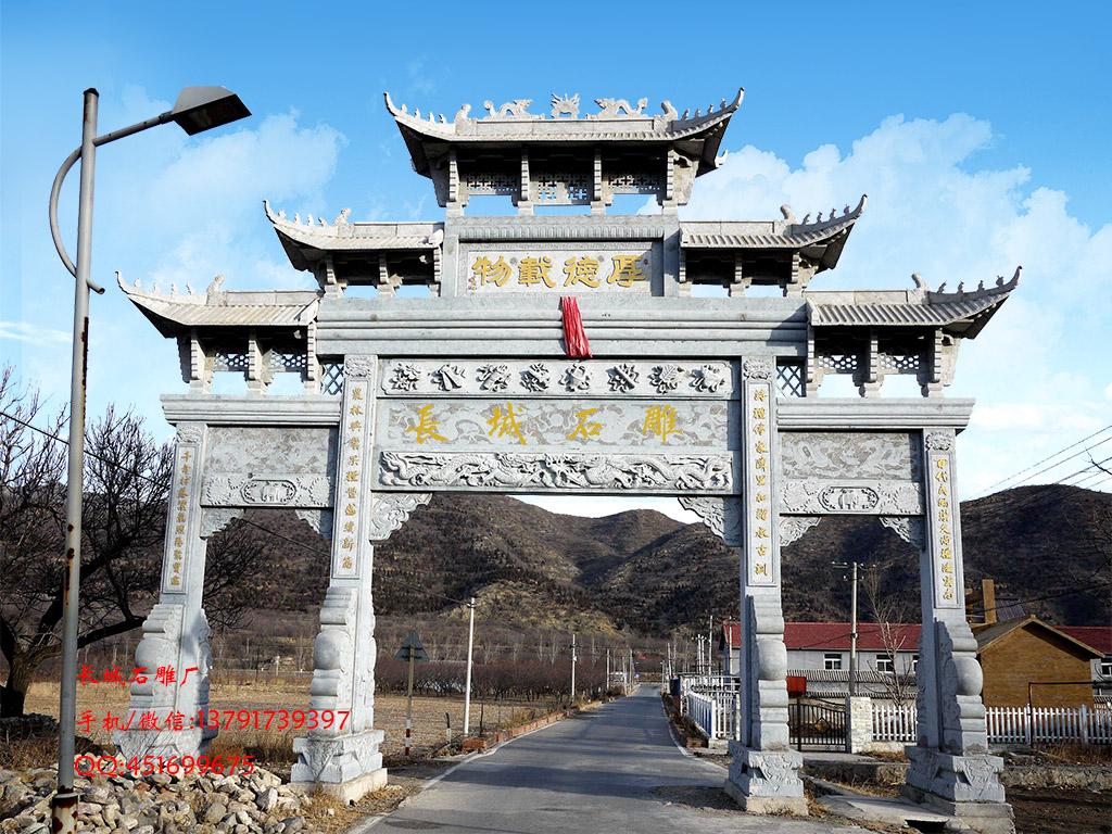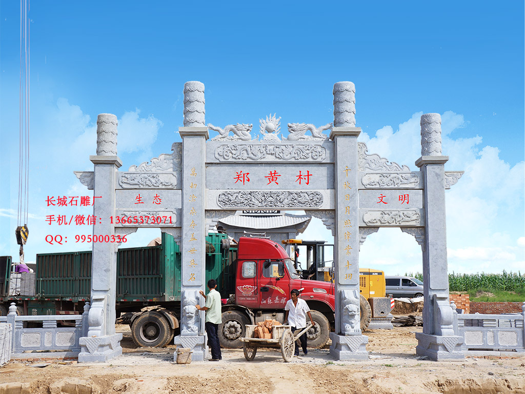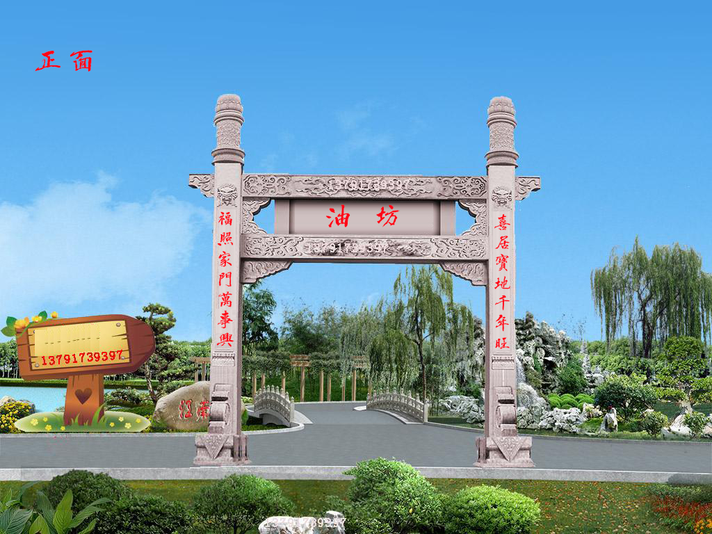現(xiàn)代農(nóng)村門(mén)樓圖片及進(jìn)村門(mén)樓樣式大全,現(xiàn)代很多的新農(nóng)村村口都建有現(xiàn)代農(nóng)村門(mén)樓和進(jìn)村門(mén)樓等,深受歡迎的現(xiàn)代農(nóng)村門(mén)樓和進(jìn)村門(mén)樓;現(xiàn)代農(nóng)村門(mén)樓或者進(jìn)村門(mén)樓就是用一些質(zhì)地比較堅(jiān)硬的石材,經(jīng)過(guò)石雕師傅精心雕刻而成的石門(mén)樓。在農(nóng)村村口的交通要道上建造一座別致的現(xiàn)代農(nóng)村門(mén)樓或者進(jìn)村門(mén)樓不僅能襯托出一種古韻氣息還具有一定性的標(biāo)志作用。