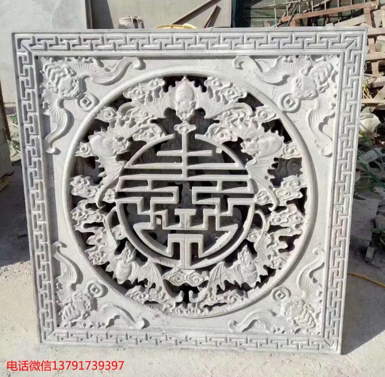 字體類。一般石刻窗戶、浮雕窗戶都是鏤雕精雕的手法,雕刻上的字體大多有吉、喜、福、祿、壽等字體,具有較好的我們文化寓意,通過不同的字體樣式可以做出多種造型,符合各類的審美觀和裝飾效果。