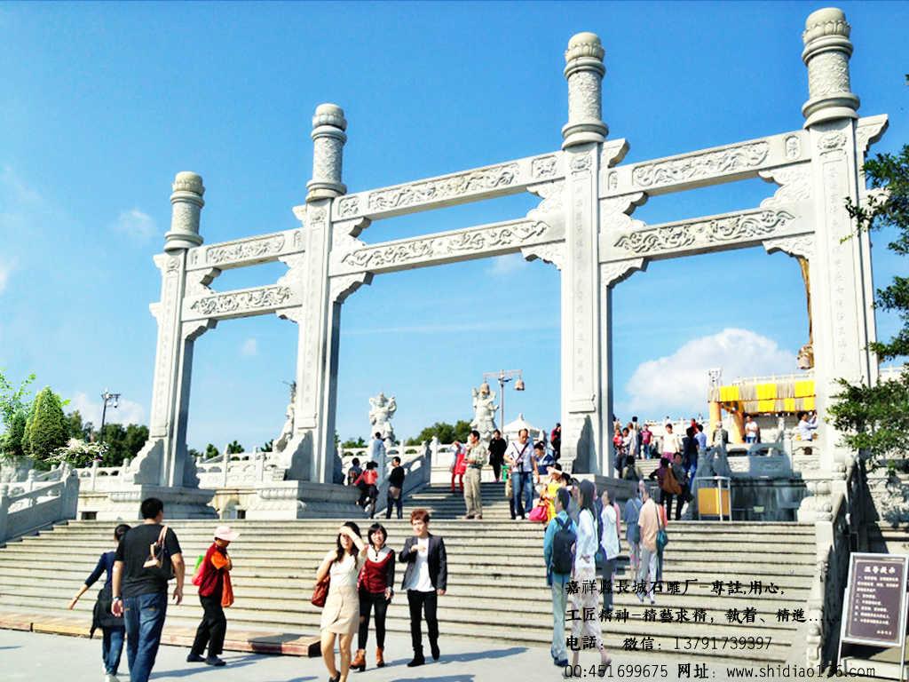??? 寺廟山門牌坊比較大氣,寺院石門樓已經(jīng)有上千年的歷史,結(jié)合石雕文化傳承著我們我們的歷史和文化,氣勢雄偉壯觀,可以增加寺廟的整體建筑效果,同時也起到裝飾的作用。這類寺廟牌坊造型多樣可分為沖天式或閣樓式,美觀大氣,可根據(jù)山門入口的寬敞程度設(shè)立不同規(guī)格的牌坊,如單門、三門、五門等,規(guī)格越大,造型*大氣,具有一定的藝術(shù)價值和欣賞價值。