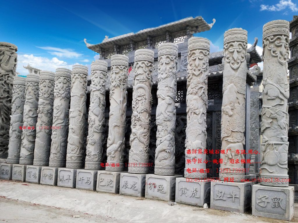 現(xiàn)代石雕文化柱圖片_十二生肖文化柱樣式大全