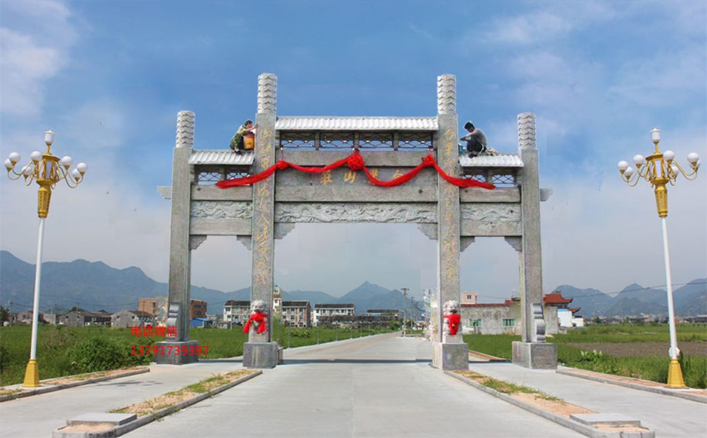 ??? 其實現(xiàn)在我們越來越多的能夠在一些農(nóng)村或是小鎮(zhèn)的入口看到這類矗立的鄉(xiāng)鎮(zhèn)路口石大門、鄉(xiāng)村入口牌坊、農(nóng)村大理石村門等,除了能夠體現(xiàn)鄉(xiāng)鎮(zhèn)的美觀和水平之外,*可以說是一種地標(biāo)性的建筑。除此之外,鄉(xiāng)鎮(zhèn)石大門還有祛邪**的作用,在古時候,石門是結(jié)合各類風(fēng)水學(xué)而建造的,預(yù)示著整個村子鄉(xiāng)鎮(zhèn)的平安等。