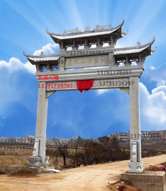 ??? 雖然是建在村落、鄉(xiāng)下的鄉(xiāng)村石牌樓,但是它的樣式并不是很單一。很多這種類型的鄉(xiāng)村石牌樓他們有著不同的樣式,像是單門石牌樓、三門石牌樓等等。在農(nóng)村石牌樓上面,也會被雕刻上一些祥云、飛蟲走獸等等。可能這些鄉(xiāng)村石牌樓并沒有那么奢華繁復,但是美觀大氣的風格*符合村落的樣式。