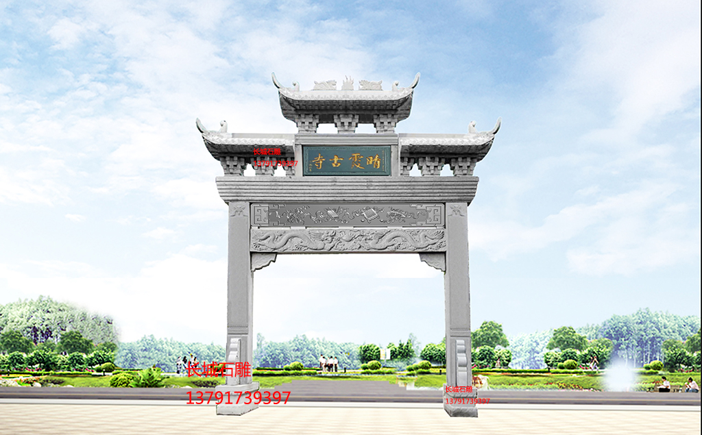 ??? 單門(mén)牌樓也被稱(chēng)為一門(mén)牌樓或者單門(mén)石牌樓、一門(mén)石牌樓、單門(mén)牌坊、一門(mén)牌坊等等,從石牌樓廠家嘉祥縣長(zhǎng)城石雕廠提供單門(mén)牌樓圖片及一門(mén)牌樓樣式大全中可以看出,單門(mén)牌樓樣式有很多,如一門(mén)一樓、一門(mén)三樓等樣式,從這些單門(mén)牌樓樣式中又可以看到很多不一樣的樣式,單門(mén)牌樓常見(jiàn)于鄉(xiāng)村、農(nóng)村、村莊、村口、路口、寺院、景區(qū)、公園、村頭、祠堂、宗祠等地方,下面來(lái)看看單門(mén)牌樓及一門(mén)牌樓有哪些樣式可選。