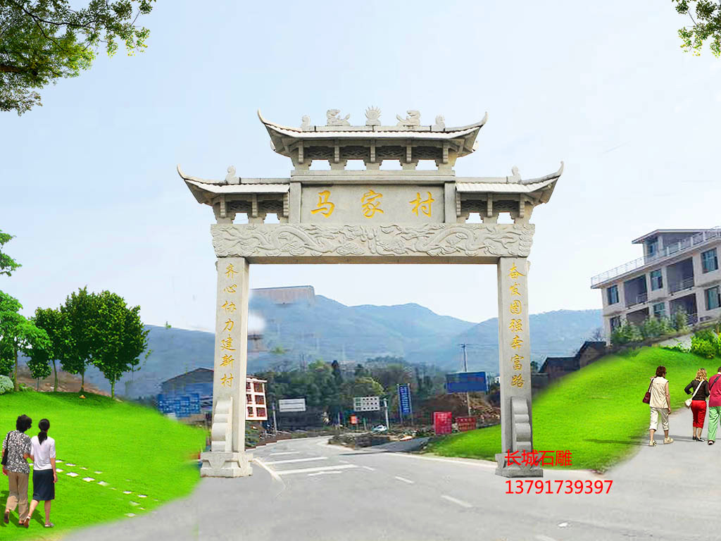單門牌坊圖片一門石牌樓樣式大全,隨著現(xiàn)代社會主義新農(nóng)村建設(shè),很多新農(nóng)村村口都選擇修建單門牌坊和一門石牌樓,深受農(nóng)村村民們青睞的村口單門牌坊及一門石牌樓都是采用質(zhì)地比較堅硬的石材,經(jīng)過石雕藝人們勤勞的雙手精心雕刻制作而成。新農(nóng)村的出入口處修建單門牌坊不僅可以起到標(biāo)志性作用,還可以起到提升鄉(xiāng)村的村容村貌的作用。