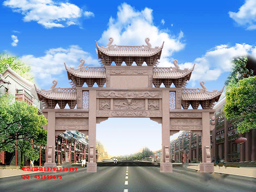 ??? 浙江農(nóng)村村口大門也被稱為農(nóng)村村口牌樓或者村口石牌樓以及村口石大門等,隨著國家提倡現(xiàn)代鄉(xiāng)鎮(zhèn)社會主義新農(nóng)村建設(shè),越來越多的鄉(xiāng)鎮(zhèn)開始修建農(nóng)村村口大門作為新農(nóng)村建設(shè)中的標(biāo)志性建筑,修建農(nóng)村村口大門極大的提升了村莊形象,浙江紹興農(nóng)村村口大門及村口石牌樓不僅起到了裝飾效果,還提升了一個村莊的村容村貌,稱為本村的一大特色。