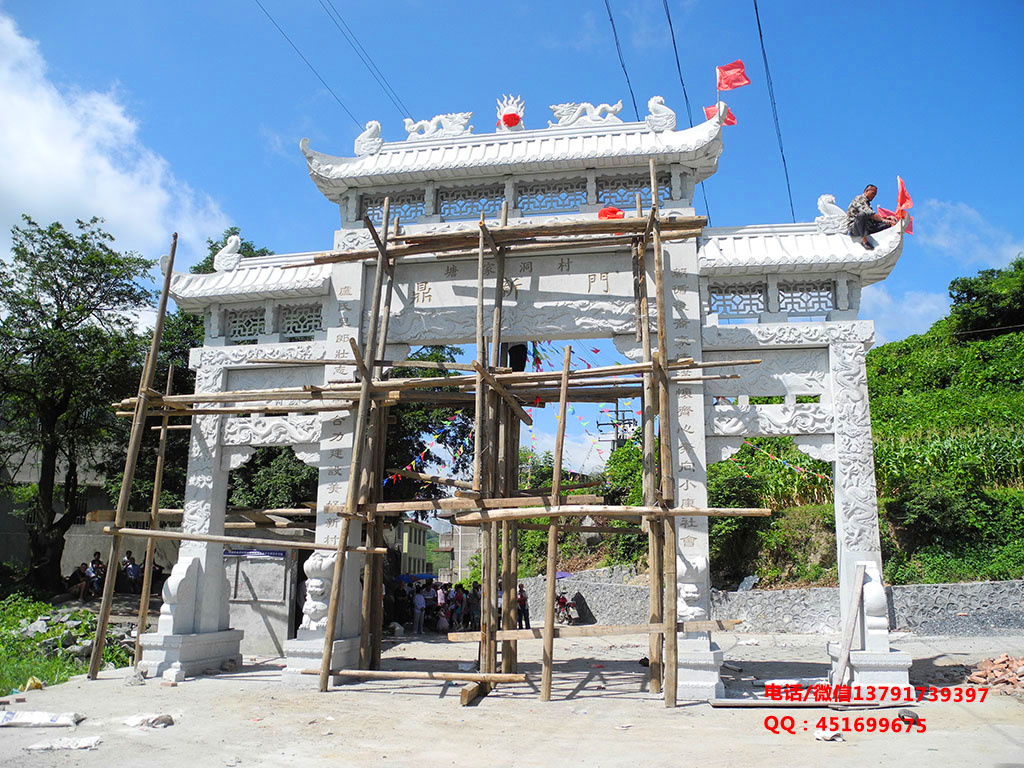 ??? 農(nóng)村石牌樓圖片樣式可分為一門石牌樓和三門石牌樓兩種,其中又分為一樓、三樓、五樓、七樓等樓數(shù),從這里可以看出農(nóng)村石牌樓圖片樣式有很多,可供客戶選擇的樣式也非常多,如下面農(nóng)村石牌樓圖片為單門石牌樓樣式,從圖片中可以看出這座石牌樓雕刻的非常精細(xì),樣式美觀大方,而且這座農(nóng)村石牌樓樣式在農(nóng)村中較為常見(jiàn),而且價(jià)格不高,很受客戶們的青睞,樣式如下;
