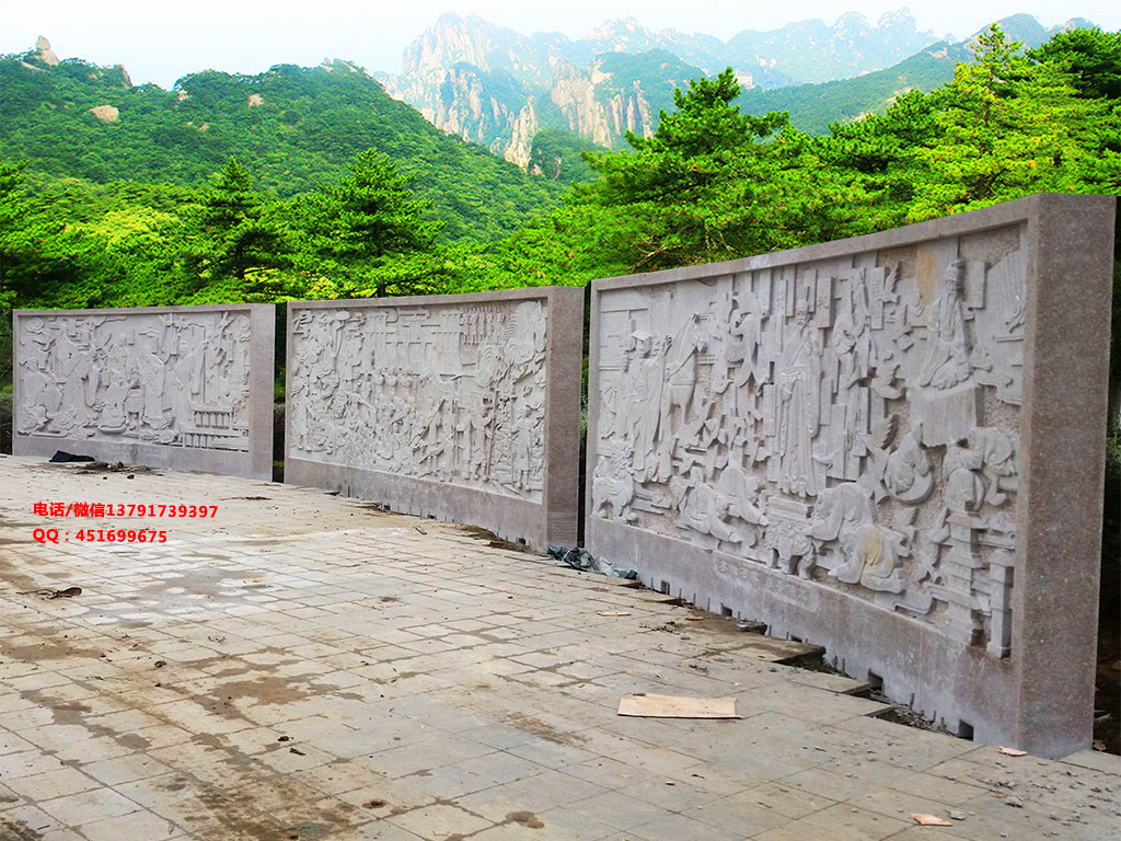 ??? 浮雕是雕刻工藝的一種,和繪畫相結(jié)合,將雕刻的圖案突出平面,形成凹凸感,這種雕刻更加生動,具有很高的藝術(shù)性和欣賞價值,是雕刻文化的一種體現(xiàn)。我們經(jīng)常在一些建筑空間看到這種大型浮雕壁畫,使整個空間的墻面更加生動立體,突出重點(diǎn),現(xiàn)在大型浮雕壁畫制作大多使用石雕,因此也是一種石雕文化的傳承。如果說大型浮雕壁畫是墻面上的藝術(shù),那么大型浮雕無疑是在壁畫之上的,比浮雕壁畫更加繁雜和深刻。