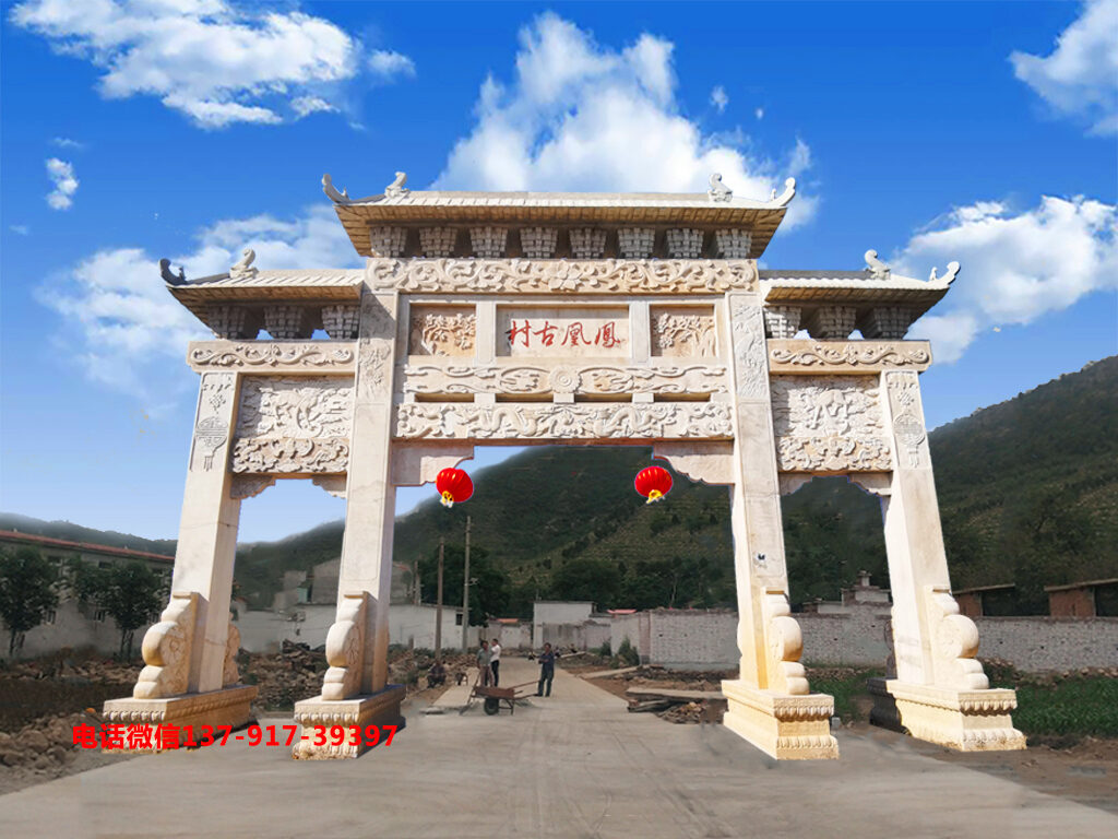 新農(nóng)村村口石大門也被稱為新農(nóng)村村口牌坊、鄉(xiāng)村入口石大門、新農(nóng)村石大門、村莊石大門等,新農(nóng)村村口石大門建筑是一種文化,也是一座村莊的標(biāo)志性村標(biāo)建筑,新農(nóng)村村口石大門也是一座村莊的門面,也是本村風(fēng)俗文化的體現(xiàn),反映出了本村的風(fēng)土人情和文化內(nèi)涵,下面由石牌坊廠家-嘉祥縣長城石雕廠對新農(nóng)村村口石大門圖片樣式大全進(jìn)行介紹。