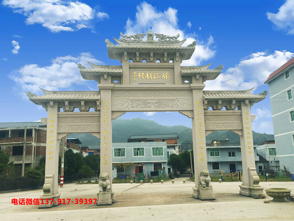 村門牌坊也被稱為村門牌樓、農(nóng)村村門、鄉(xiāng)村村門、村口大門牌坊、村口石門等,村門牌坊牌樓建造作用及風水,村門牌坊或者村門牌樓是指建造在農(nóng)村出入口處的石牌坊,村門牌坊蘊涵著極其豐富的文化內(nèi)涵,具有標志村名的作用,還可以提升村口的景觀,具有美化村容村貌的作用,對于美麗鄉(xiāng)村安裝村門牌坊起到什么作用和風水,下面由石牌坊廠家-嘉祥縣長城石雕廠對村門牌坊牌樓建造作用及風水進行介紹!