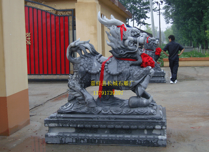 ??? 在“四靈"中,石雕麒麟被列為首位。據(jù)《大戴石雕吉祥圖案記》載:“毛蟲三百六十,而麟為