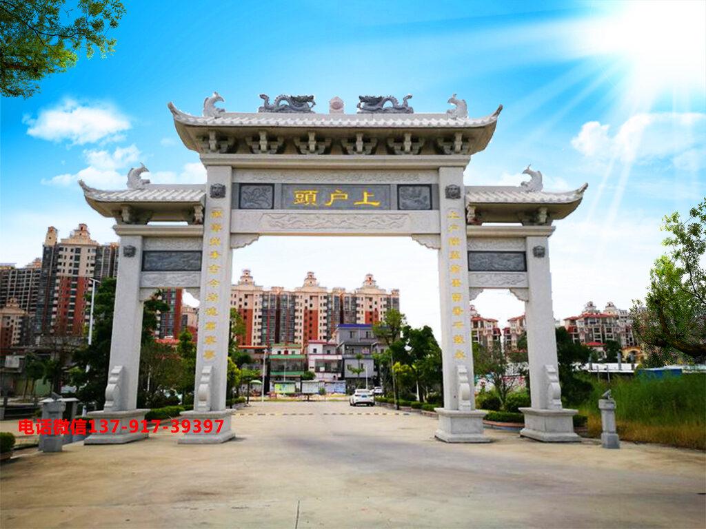 隨著人們生活水平的提高,建設(shè)小康農(nóng)村不是一個新概念。鄉(xiāng)村標志石牌坊這種傳統(tǒng)的裝飾建筑越來越多。新農(nóng)村石牌坊建設(shè)是我國進入以工促農(nóng)、以城帶鄉(xiāng)發(fā)展新階段后面臨的全新課題,是時代發(fā)展和構(gòu)建和諧社會的必然要求。從石牌坊廠家嘉祥縣長城石雕廠提供的鄉(xiāng)村標志石牌坊圖片來看,常見的鄉(xiāng)鎮(zhèn)石牌坊有一門沖天式、一門一樓、一門三樓、三門沖天式、三門三樓、三門五樓、三門七樓等。那么,這些石牌坊在美麗的鄉(xiāng)村和城市建設(shè)中能起到什么作用呢?