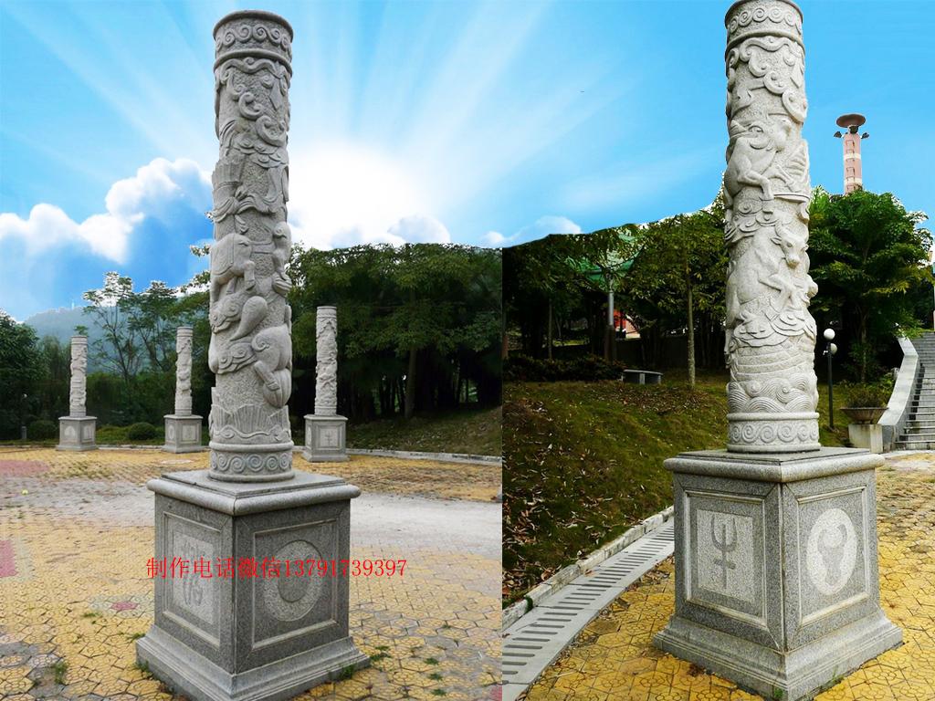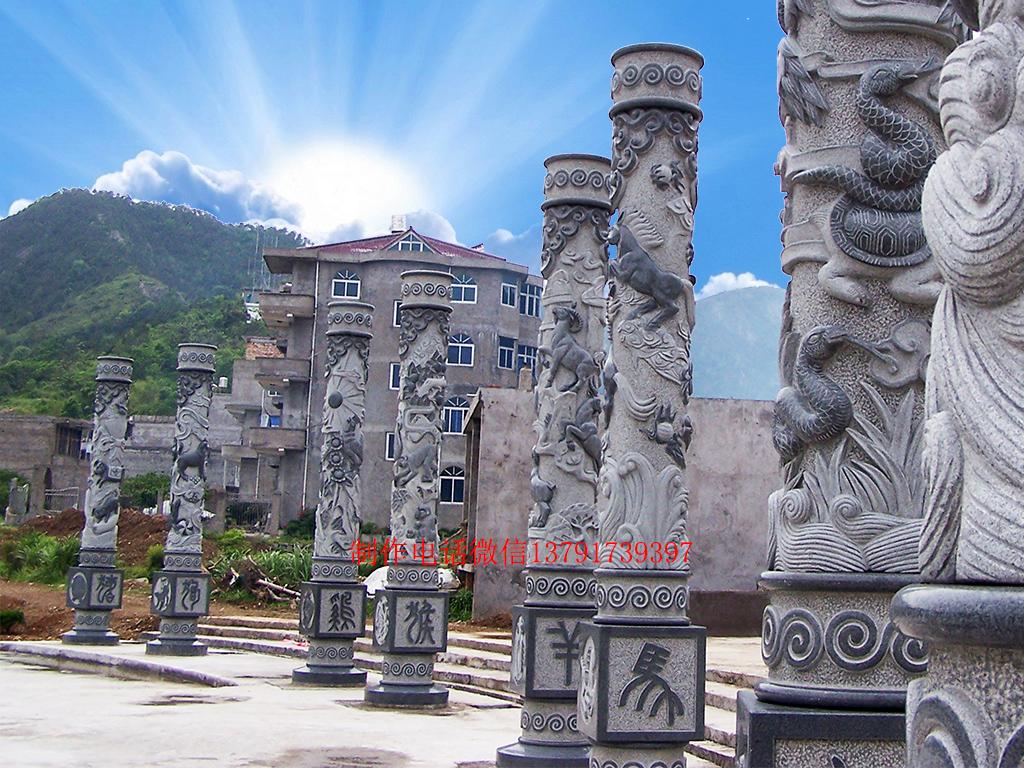 現(xiàn)代石雕文化柱圖片_十二生肖文化柱樣式大全