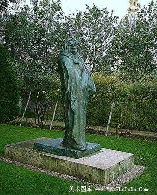 著的病體象抖動(dòng)他的睡衣一樣,由干病魔使他失眠,遇他受苦。巴爾扎克苦惱地仰首凝視,那朦朧的睡眼、緊閉的嘴唇和飄舞的亂發(fā),都表現(xiàn)出一種被失眠折磨得無可奈何的神態(tài),但又好似在靜靜地構(gòu)思,推敲著關(guān)健的辭句。那寬蔽的睡衣,手法同樣概括洗練,使雕像的身體形式達(dá)到統(tǒng)一。這一首創(chuàng)的新風(fēng)格,是為特珠的題材內(nèi)容所決定,給現(xiàn)代雕刻創(chuàng)作開創(chuàng)了一個(gè)新途徑.