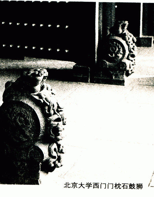 北京大學(xué)西門在海淀區(qū)頤和園路,門前一對(duì)石獅鎮(zhèn)守。明清兩代窗里是園林。20世紀(jì)20年代,此園稱燕園,美國(guó)人司徒雷登在此建立燕京大學(xué),改建成校園,把圖明園廢墟中的石獅、華表及一些石刻搬到學(xué)校裝點(diǎn)環(huán)境,西門的石獅就是這樣來(lái)到學(xué)校守門的。