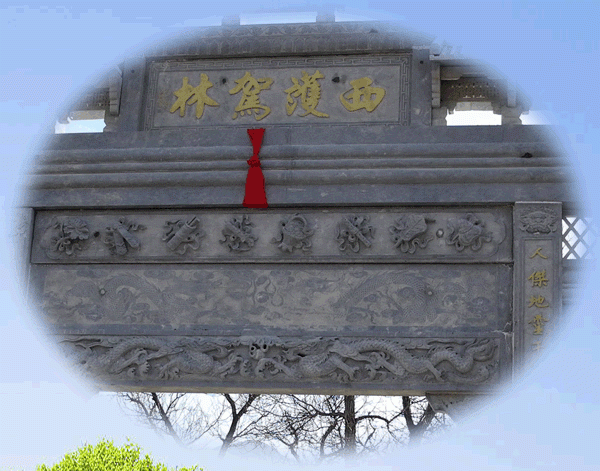 這座石雕牌坊雕刻極精細,牌匾的文字是,一面是“厚德載物”另一面是“西護駕林”這座石雕牌坊的主梁和四根石雕柱子都是一塊巨石雕成,牌坊圖案整體布局疏密得當,古樸大方…….