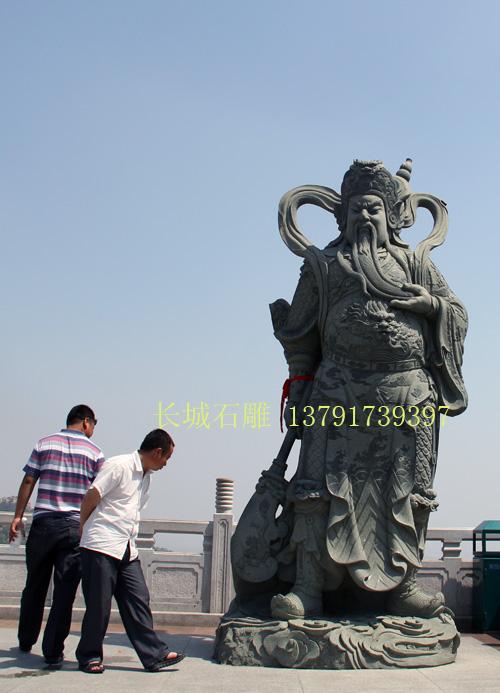 這尊關(guān)羽石雕像雕刻的形體渾厚、凈勝飽滿