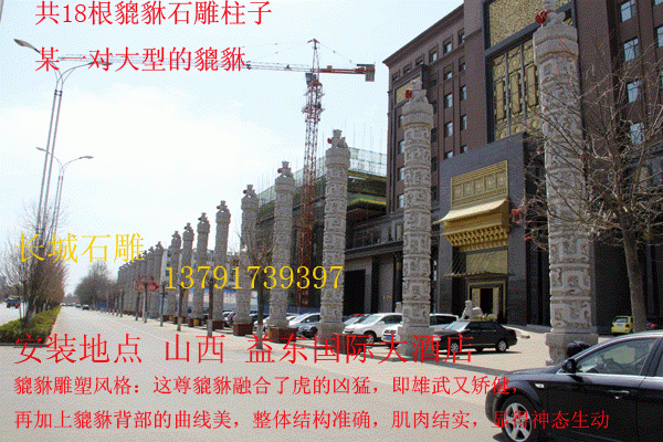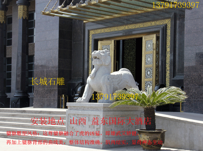 這對石雕貔貅昂首挺胸,快步疾走,怒目張口,吼聲逼人。 從頭部和頸部線刻的鬣毛來看,其造型與漢代的放個相似,又和唐代的雕刻風(fēng)格相近,其他他是融合漢唐的渾厚,可謂化雄武為矯健,化渾厚為輕靈。長城石雕廠的雕刻師父門融合了虎的特點(diǎn),通過運(yùn)用一系列藝術(shù)處理手法,創(chuàng)造了新型的石雕皮休。