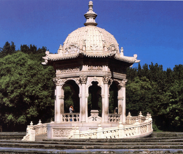 出生于嘉祥石雕世家的建筑工程師,于1981年建立的嘉祥縣工藝美術(shù)公司,1986年秋,應(yīng)圓明園籌建管理處的邀請修復(fù)圓明園萬花陣迷宮石亭。圓明園萬花陣建于清乾隆年間、是圓明園內(nèi)的一座中西合璧威嚴(yán)華貴的代表性建筑,其主要特點是:用萬字不到頭的雕花磚墻,分割成若干道迷陣,因而稱作“萬花陣”。萬花陣南北長89米,東西寬59米,陣墻總長1600多米,墻高1.2米,由陣墻、中心石雕圓亭、碧花樓和后花園組成,曾是封建帝王游樂的場所。每當(dāng)中秋之夜,清帝坐在陣中心的圓亭里,宮女們手持黃色彩綢扎成的蓮花燈,尋徑飛奔,先到皇帝身邊者可得到皇帝的賞賜,所以又叫“黃花陣”。萬花陣后毀于1860年10月的一場大火。長城石雕廠藝人在一無圖紙、照片,二無文字記載的情況下,憑著僅有的一副鋼板畫作參考,認(rèn)真琢磨、精心設(shè)計、反復(fù)修改,繪制出工程圖紙和施工方案。經(jīng)過近三年的雕琢施工,終于在1989年夏天,以奇巧的設(shè)計、精美的雕刻,使這座消失100多年的圓明園萬花陣迷宮又重現(xiàn)于世人面前。